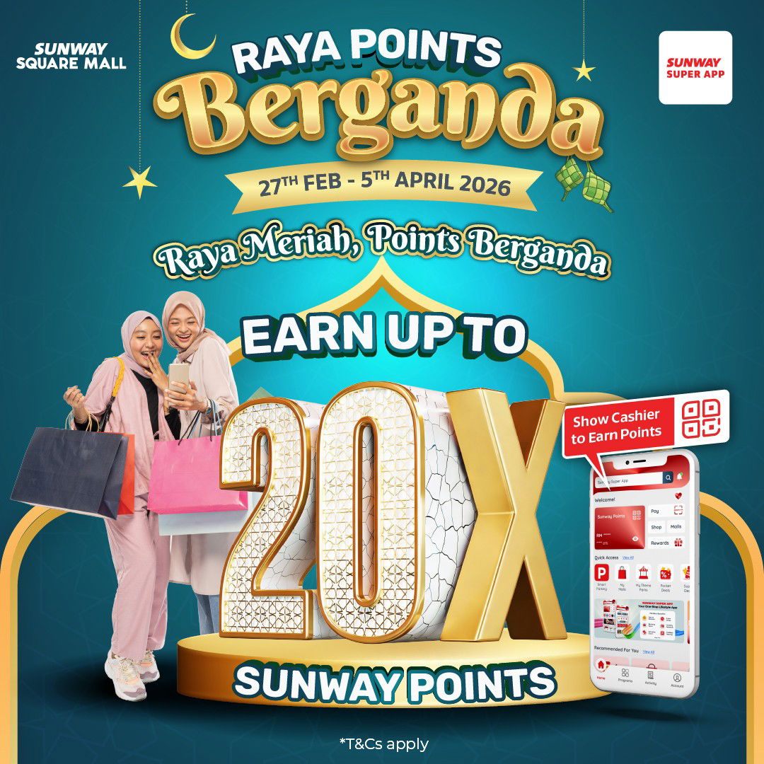 EARN UP TO 20X SUNWAY POINTS at Sunway Square Mall this Hari Raya from 27 February to 5 April 2026!