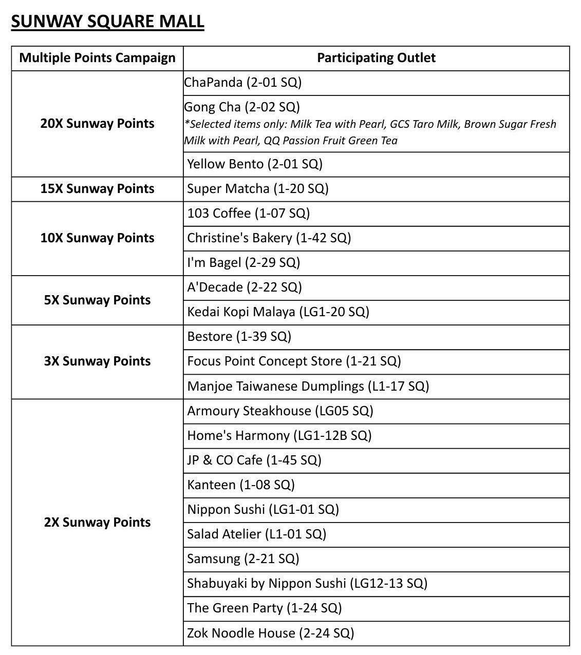 Promotions are only available at participating Sunway Super App merchants in Sunway Square Mall.